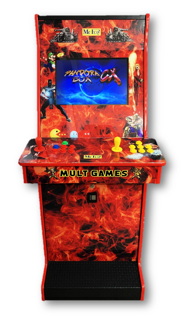 Fabricada pela Mc Play, o fliperama conta com gabinete compensado e fórmica, monitor 19” e placa multijogos ou pandora.